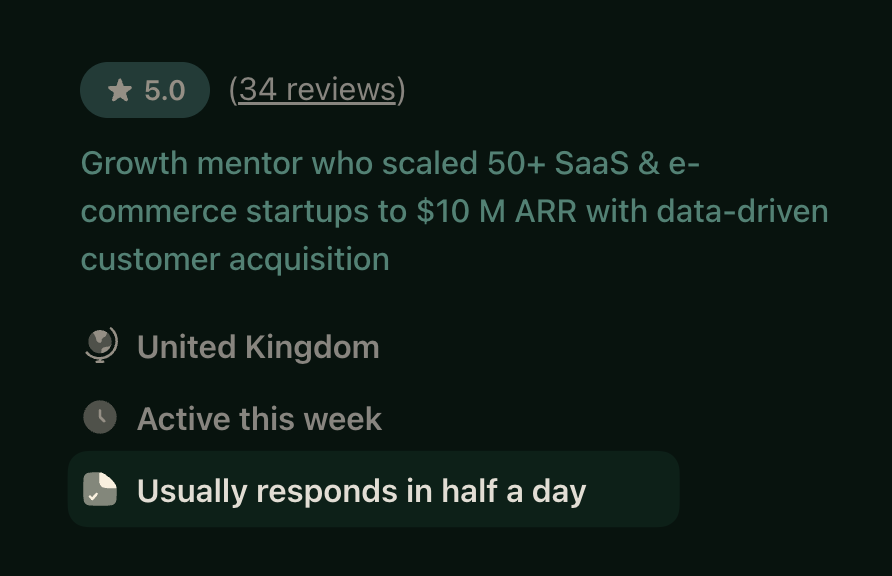 Our goal is for all applications to receive a reply, so when mentors are unable to get back to you, we will take further steps to make sure our marketplace only includes active and engaged mentors.